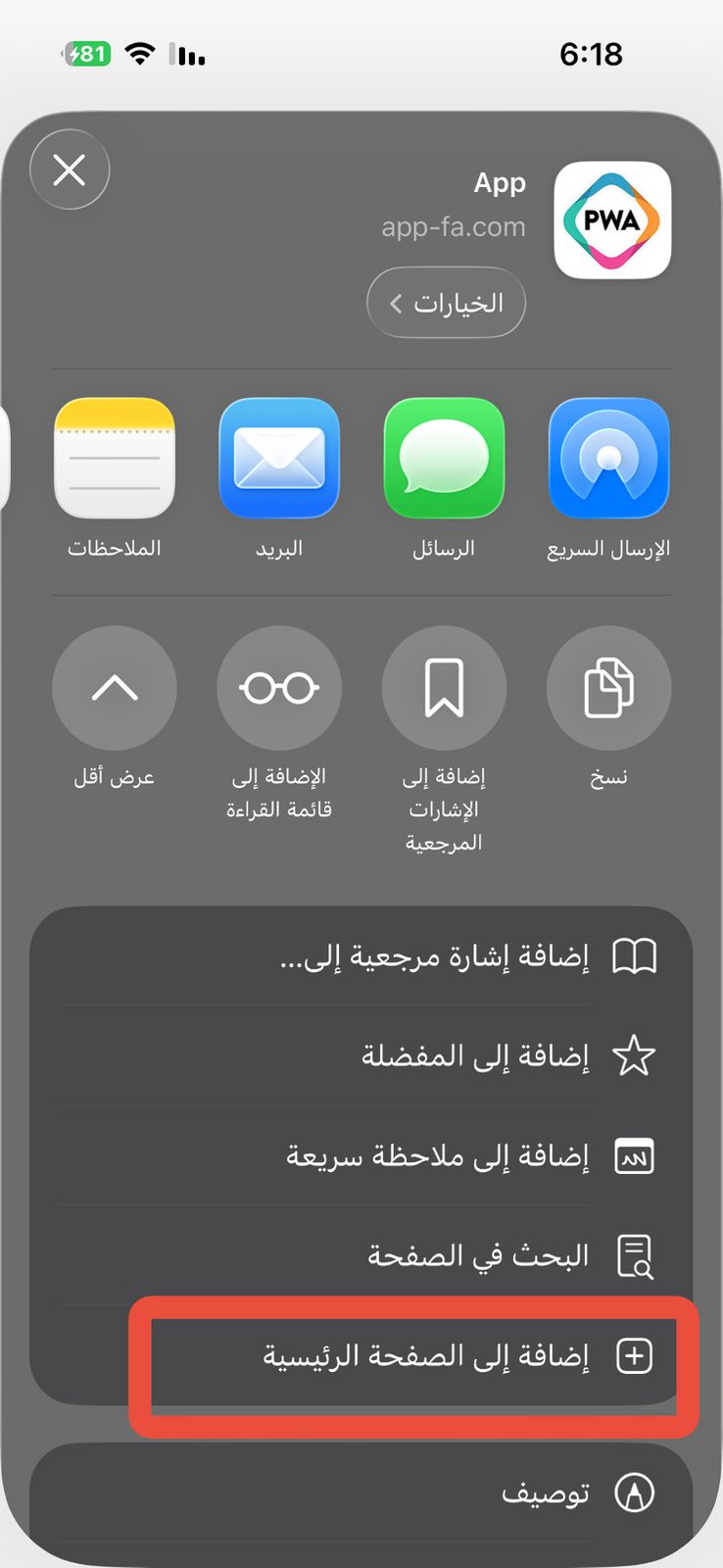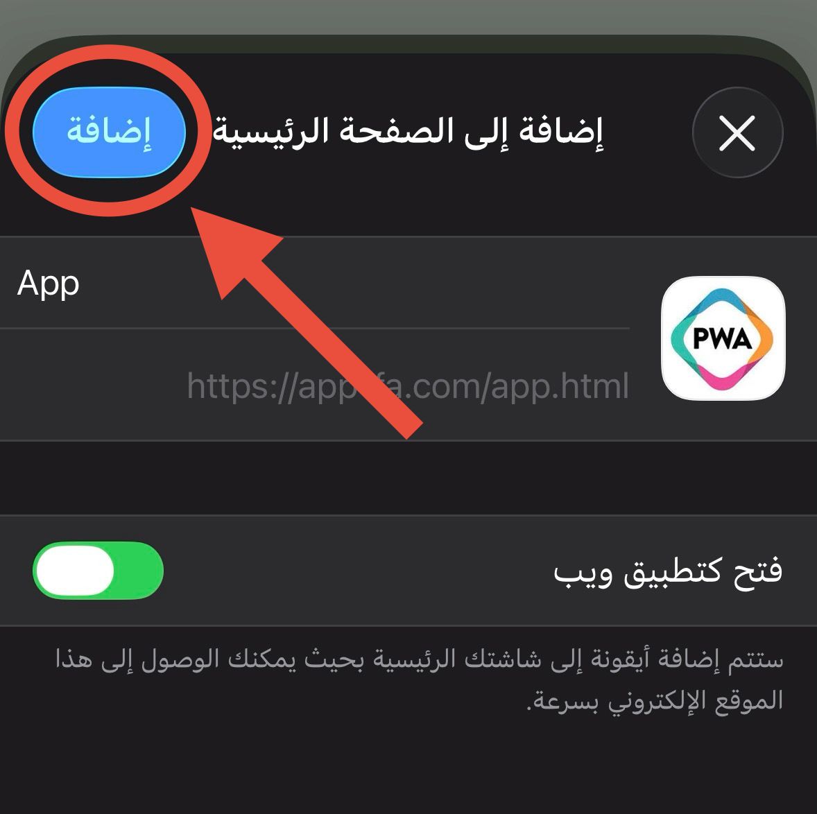 3- اضغط على : إضافة إلى الصفحة الرئيسية